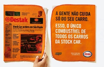Jak se mohou noviny pro potřeby inzerentů ještě změnit? Například takhle dopadl brazilský deník, jehož falešná titulní strana byla vytištěna na flanelu a měla sloužit jako hadřík pro motoristy v případě potřeby.