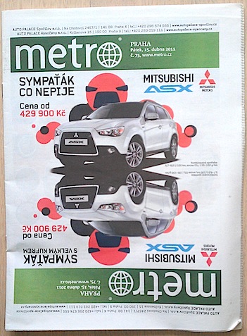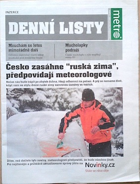 Zajímavého spojení pak na titulní straně Metra docílil internetový server Novinky.cz, který pomocí přebalu inzeroval jakési “noviny v novinách” v podobě Denních listů.