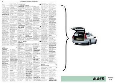 Svět už také poznal např. parfémovanou inzerci, kterou využila automobilka Mitsubishi. Přes všechny možnosti, které se dnes nabízejí, však může být kolikrát účinnější vtipná kreativa – tak jako v případě automobilu Volvo, který jasně ukazuje, co všechno pojme jeho zavazadlový prostor…
