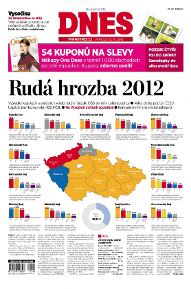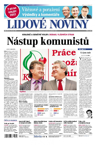 Pondělní titulní strany tuzemských celostátních deníků jednoznačně interpretují ukončené volby do krajských zastupitelstev jako vítězství KSČM. MediaGuru.cz z archivních důvodů přináší pohled na pondělní titulní strany českých deníků po krajských a senátních volbách, které se uskutečnily 12.-13. října 2012.
