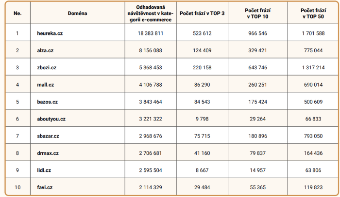Prvních deset nejviditelnějších tuzemských e-commerce značek na Googlu uvádíme v tabulce níže. Celá zpráva je k dispozici zde.