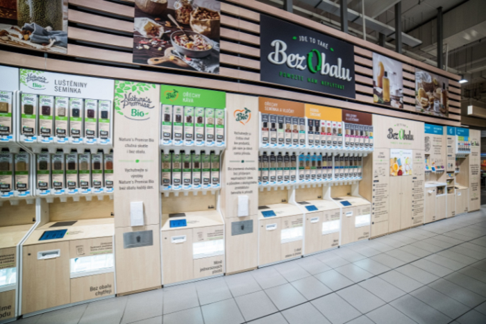 Obchodní řetězec Albert postupně rozšiřuje bezobalový prodej suchých potravin a drogerie ve spolupráci se společností Miwa. Po testování na prodejně v pražské Galerii Butovice je od loňského října k dostání také v prodejně na pražském Chodově. Zákazníci mohou na Chodově vybírat z více než 80 položek, které nakoupí buď do vlastních nádob, nebo do speciálních zálohovaných opakovaně plnitelných nádob vybavených chytrou technologií. Společnost Miwa dodala Albertu technologii násypníků, jejichž ekologická stopa je o 71 % nižší než u klasické distribuce v jednorázových obalech. Systém pro tekutou drogerii dodala společnost Tierra Verde.