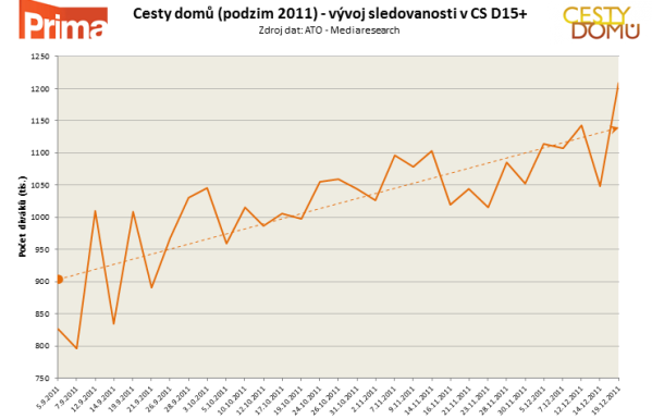 Jak vyplývá z grafu, sledovanost pořadu se v průběhu času zvyšovala. Vůbec nejsledovanějším dílem byl přitom ten závěrečný, vysílaný právě v pondělí 19. prosince. V cílové skupině D15+ sledovalo tuto epizodu 1 209 tis. diváků při podílu na trhu 29,04 % a mezi ženami 15+ dokonce 36,58 %.