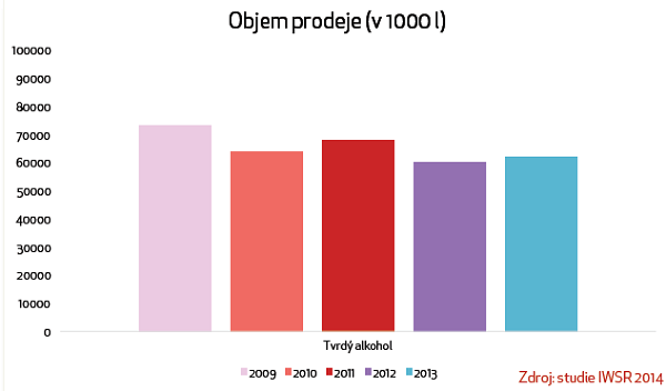 Trh tvrdého alkoholu má značné výkyvy: dlouhodobě klesá, okolo roku 2011 klesl razantně, nyní stagnuje, až mírně roste. Loni se meziročně zvýšil o 7%.