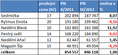 Znamená to, že segment bulvárních týdeníků přijal nový titul, aniž by to zásadně ovlivnilo výsledky prodaných nákladů stávajících týdeníků. Z říjnových dat ABC ČR vyplývá, že bulvární týdeníky celkem se bez započtení titulu Moje šťastná hvězda, který zatím není auditován ABC ČR, prodaly dokonce o cca 10 tisíc výtisků více než v září. Stalo se tak zásluhou především týdeníku Sedmička, který v říjnu zaznamenal nejvyšší nárůst oproti září a s průměrným prodaným nákladem přes 200 tisíc se stal nejprodávanějším bulvárním týdeníkem v říjnu.