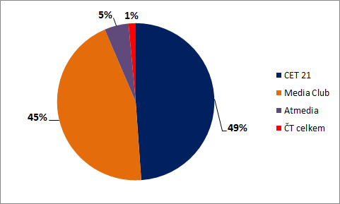 Komerční televizní prostor ovládají v Česku dva subjekty: CET 21 jakožto provozovatel kanálů televizní skupiny Nova a Media Club, zastupující televizní skupiny Prima, Barrandov a také Óčko. Obě se v součtu dělí o cca 95 % prodaných TRPs.