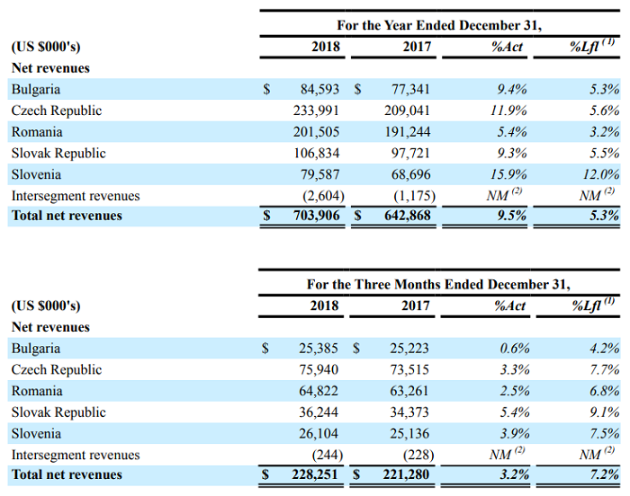 Podle generálního ředitele Michaela Del Nina CME již pátý rok po sobě zvýšila hrubý provozní zisk (OIBDA) o více než 20 procent. „Stejně neobyčejný je peněžní tok, který v roce 2018 vzrostl o téměř 30 procent. Toto zvýšení peněžních prostředků vygenerovaných naší činností nám umožnilo minulý týden splatit dalších 60 milionů eur dluhu, což přispělo ke snížení našeho hrubého dluhu během posledních 18 měsíců o téměř 440 milionů dolarů," uvedl.