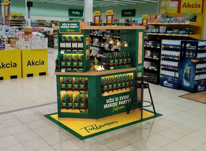 Kromě zmenšenin barů Tullamore D.E.W. využívá také permanentní shop-in-shop, který je umístěn v Makru na pražském Černém Mostě. Jeho vzhled a cíle se však od předchozí aplikace liší. „Sekundární cílovkou pro nás byli majitelé gastropodniků, kteří ji svým zákazníkům nabízejí,“ popisuje za Mast-Jägermeister Márk Zala.