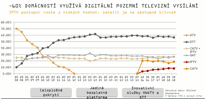 mají zvyšovat své zastoupení v příjmu televizního signálu, naznačují