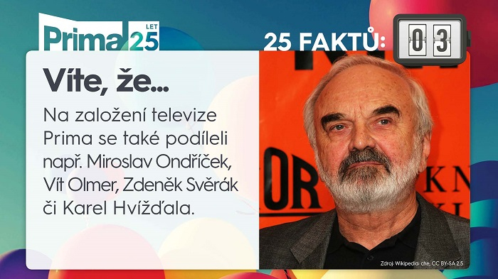 Přesně před 25 lety začala vysílat první česká komerční televize, Premiéra TV, z původně přebudovaného rozhlasového studia v tehdejším Paláci kultury (nyní Kongresové centrum Praha). Už první den vysílala stanice od 8:00 do půlnoci a diváci mohli zhlédnout filmy jako Amadeus, Tři mušketýři, balet Řek Zorba či záznam klasické hudby. Podle tehdejšího měření AISA již v srpnu 1993 dosahovala stanice podíl 29 % diváků a při lednovém průzkumu v roce 1994 dokonce 36 % diváků v regionu Praha a střední Čechy. U zrodu první české komerční stanice stála režisérka Marie Poledňáková, režisér Jiří Menzel a Jitka Markvartová.