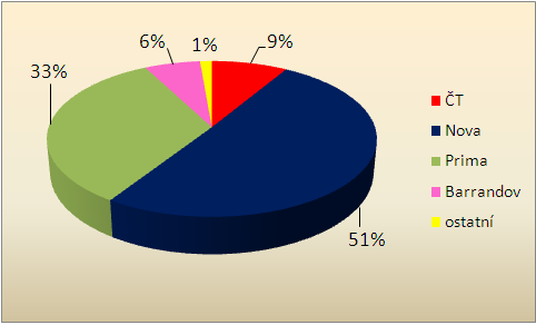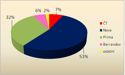 Je patrné, že většina reklamního vysílání je koncentrována pod největší komerční stanice Novy a Primy. TV Barrandov se v podílu na GRPs letos dostala na úroveň svého podílu na sledovanosti. Podíl na reklamním trhu menších (ostatních) stanic ale zatím neodpovídá jejich postavení na podílu sledovanosti.
