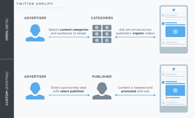 Amplify je dva roky starý program Twitteru pro videoreklamy. Prostřednictvím tohoto systému můžou inzerenti umísťovat na Twitter pre-rolly před krátká videa publikovaná vybranými vydavateli obsahu. Stejně tak můžou sami takovému tweetu s videem zaplatit placenou podporu, aby ho na síti vidělo více uživatelů. Limitem dosavadního modelu fungování Amplify byla pro inzerenty nutnost vybrat si ke spolupráci konkrétního vydavatele, což v praxi omezovalo možnosti jeho využití.