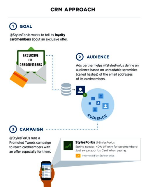 Twitter rozšiřuje možnosti své inzerce. Zadavatelům nyní nabízí zašifrované propojení jejich e-mailové databáze s uživatelskými Twitter účty zákazníků. Díky tomu budou moci inzerenti na Twitteru oslovit členy svých věrnostních programů.