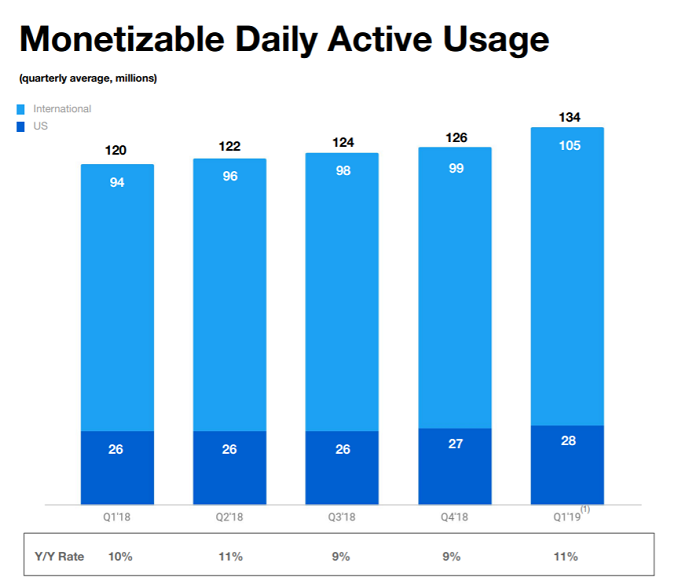 Tržby firmy se v prvním kvartálu zvýšily o 18 procent na 787 milionů dolarů. Analytici odhadovali, že se tržby vyšplhají jen na 776,1 milionu. Tržby povzbudily především příjmy z reklamy, které činily 679 milionů dolarů.