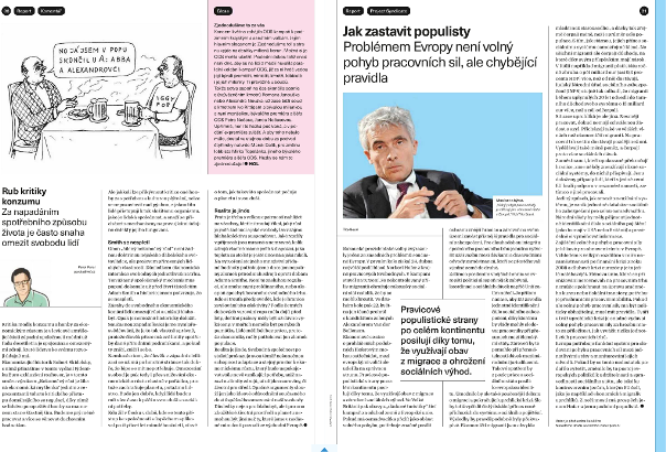 „Máme dost stádnosti a časopisů, které vypadají jeden jako druhý. Proto jsme dali šanci mladým grafikům z UMPRUM a AVU a nechali je změnit časopis, jenž je sice 18 let pověstný svým konzervativismem, ale také drzostí a nadsázkou. Výtvarná stránka časopisu by měla vyjadřovat jeho obsah," uvedl v editorialu aktuálního vydání šéfredaktor týdeníku Michal Půr. Na grafické podobě časopisu se podíleli lidé z kreativních studií Parallel Practice a Mütanta.