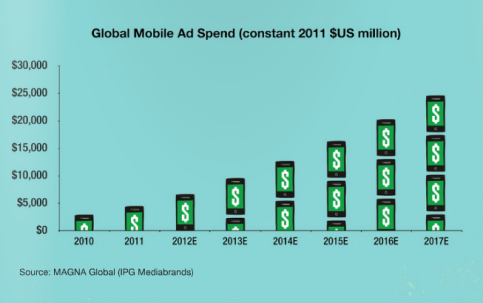 S rostoucí oblibou mobilních telefonů se zvyšují i výdaje na mobilní reklamu. Podle předpovědi společnosti Magna Global se výdaje na mobilní reklamu zvýší z aktuálních devět miliard dolarů ročně na 24 miliard dolarů v roce 2017.