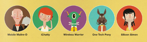 Mobile Maître-D je ve svém mobilním telefonu velmi organizovaný, ale nerad aktualizuje aplikace či mění přístroj. Sillicon Simon je sice méně organizovaný, ale za to miluje nejnovější aplikace. Pro iChatty jsou hovory s přáteli nade vše, zatímco Wireless Warrior nejdříve vyřídí pracovní záležitosti a soukromé záležitosti nechává až na večer.