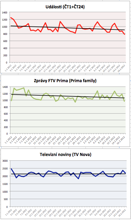 Přestože dílčí změny ve zpravodajské relaci České televize – Události – přinesly na začátku letošního roku vyšší sledovanost než ve stejném období vloni, na konkurenční Zprávy FTV Prima to zatím nestačilo.