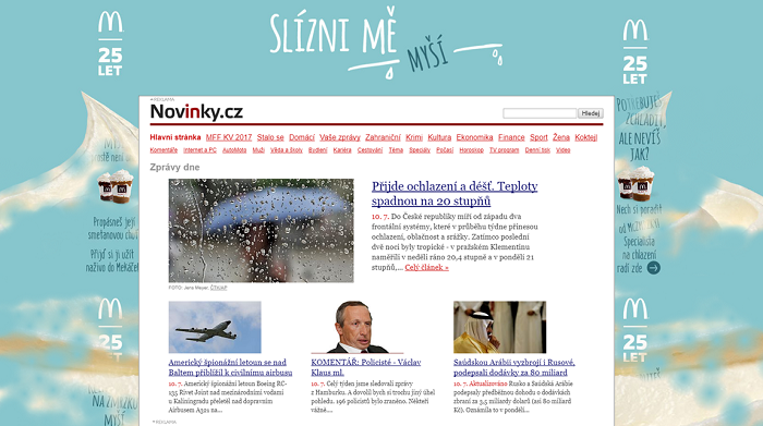 Léto je za dveřmi a je potřeba se zchladit, ať už studeným nápojem nebo lahodnou zmrzlinou. A právě k propagaci své zmrzliny McSundae využila společnost McDonald’s branding a takzvaný Scratch, jeden z kreativních komponentů Adformu. Většinu reklamního formátu zakrývá smetanová zmrzlina a uživatel ji smaže či „slízne“ pomocí kurzoru myši, čímž odhalí další reklamní sdělení. Uživatel je tak zábavnou formou zapojen do obsahu reklamy a může si na několik desítek sekund odpočinout od typického internetového shonu – ukázka ZDE.