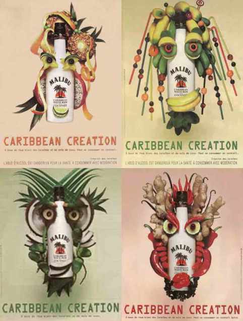 Vděčným zdrojem inspirace představují i Arcimboldovy portréty plných zvířat, květin, ovoce a předmětů. Vizuály à la Arcimboldo využila například francouzská kampaň na kokosový likér Malibu.
