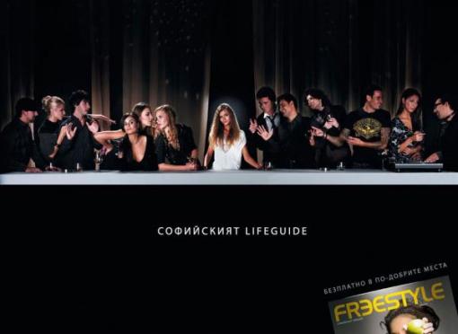 Podobný koncept s ženou Kristem použil i bulharský měsíčník Freestyle, který informuje o možnostech trávení volného času v Sofii.
