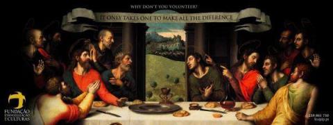 Motiv večeřícího Ježíše využila ve své reklamě například portugalská evangelická nadace Fundação Evangelizaçao e Culturas, která se záměrem ukázat, že i na jednom dobrovolníkovi záleží, představila Poslední večeři páně bez jejího hlavního protagonisty.