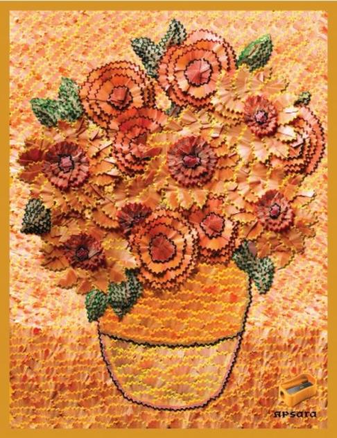 …nebo indická papírnická společnost Apsara, jež nechala slunečnice vytvořit svými ořezávátky.