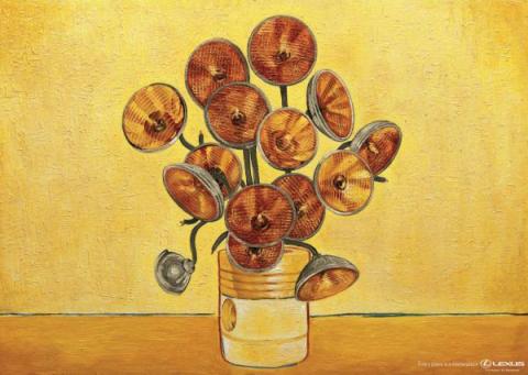 Další z oblíbených reklamních motivů jsou například Slunečnice od Vincenta van Gogha. Slunečnice využila ve své kampani automobilka Lexus, která je vyměnila za své kvalitní reflektory…