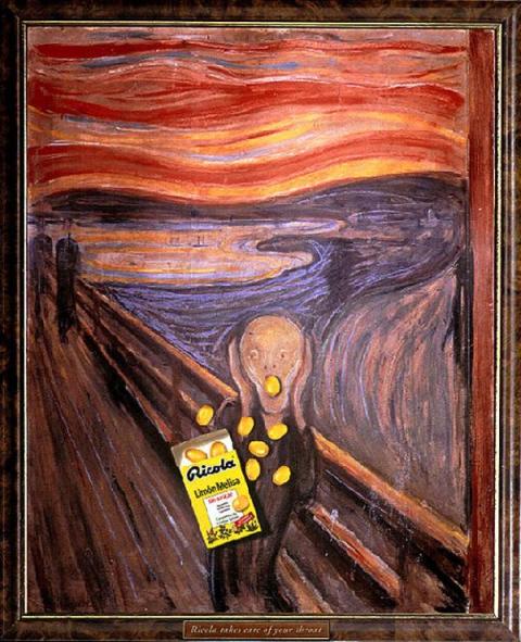 Vděčným motivem je i Výkřik norského malíře Edvarda Muncha. Expresionistického výrazu využila například španělská kampaň pro švýcarské bylinné bonbóny Ricola.