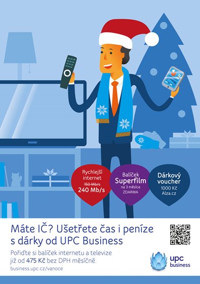 UPC Business od listopadu spustilo novou reklamní kampaň ve spolupráci s Alza.cz. Animovaná kampaň s mottem „Máte IČ? Ušetřete čas i peníze s dárky od UPC Business“ cílí na živnostníky a malé firmy.