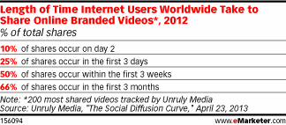 Studie společnosti Unruly Media se také podívala na dobu, kdy je sdílení nejsilnější. Na vzorku 200 světově nejsdílenějších videí zjistila, že první tři dny od publikace videa jsou pro jeho úspěch klíčové. Do dvou dnů proběhne 10 % veškerých sdílení, do tří dnů pak 25 %.
