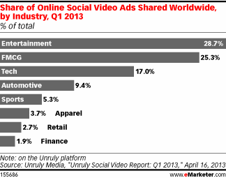 Kromě zábavních videí bodovala u internetových uživatelů i videa zadavatelů ze segmentu FMCG. Vyplývá to ze studie společnosti Unruly Media Inc., která zkoumala míru sdílení videí za první čtvrtletí letošního roku.