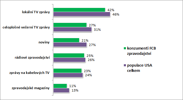 Přibližně třetinu konzumentů „facebookového“ zpravodajství navíc tvoří mladí lidé (od 18 do 29 let). Není bez zajímavosti, že získávání zpráv přes sociální síť nijak výrazně nesnižuje čerpání zpráv z ostatních druhů médií. S výjimkou tiskovin, z nichž čerpá oproti americkému průměru o 6 % méně konzumentů zpravodajství na Facebooku.
