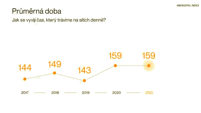 Průměrná doba strávená na sociálních sítích se oproti loňskému roku nezměnila. I letos zde tráví Češi 159 minut denně. Nárůst nastal v loňském roce, pravděpodobně v souvislosti s vypuknutím pandemie. Starší ročníky většinou patří mezi „lehčí uživatele sociálních sítích“ a tráví na nich méně času. Slováci sítím věnují naopak ještě více času, a to v průměru více než tři hodiny denně.