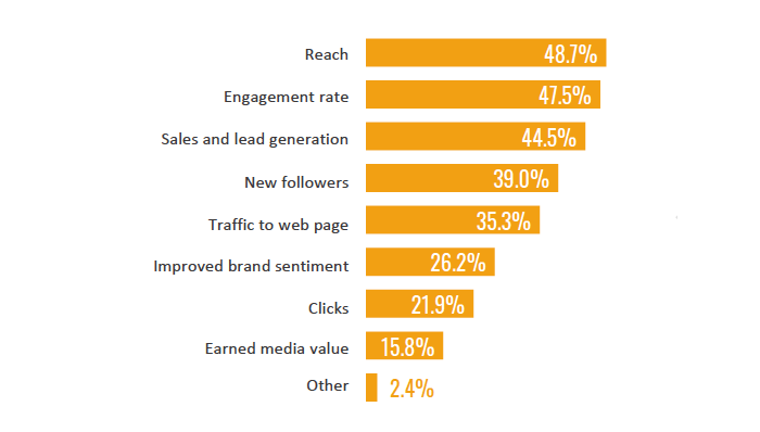Prostřednictvím influencerů chtějí firmy zasáhnout relevantní publikum, posílit povědomí o značce a budovat svou důvěryhodnost. Největší podíl marketérů (51,9 %) využívá influencer marketing k propagaci svého obsahu, 44,2 % volí tuto cestu u příležitosti uvedení nového produktu na trh či k podpoře povědomí o značce. Třetina z nich (32,6 %) s influencery spolupracuje na různých druzích spotřebitelských soutěží a 25,6 % je zve na své eventy.