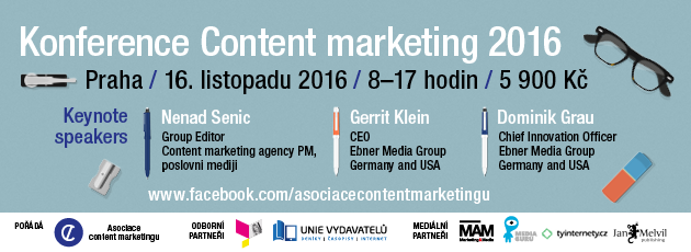 Ve středu 16. listopadu se bude v Praze konat Konference Content marketing 2016, jež cílí na lidi, kteří se zabývají tvorbou firemního obsahu.