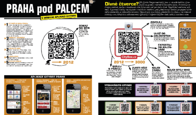 Mobilní aplikace CityBee Praha je už nyní ke stažení v AppStore a Google Play. Hlavní výhodou je integrovaná čtečka QR kódů, které odkazují na místa v databázích. Uživatel může načíst CityBee QR z letáků, plakátů nebo přímo z vizitek nebo samolepek v podnicích a uložit si místo do své osobní databáze.