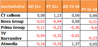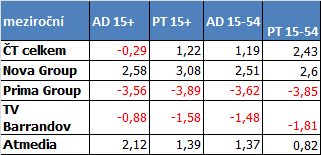 Mediální zastupitelství tematických stanic Atmedia si oproti září polepšilo především v mladší skupině 15-54 a v celodenním vysílání (15-54). Ve skupině diváků starších 15 let oproti září mírně ztratilo. V meziročním srovnání je ale výsledek stanic Atmedia nad úrovní října 2012, a to v průměru o cca 1,5 procentního bodu ve všech sledovaných parametrech.