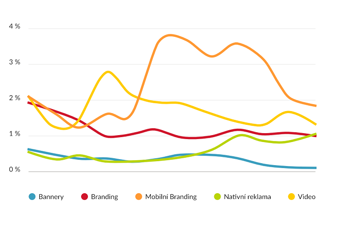 Mezi nejvýraznější formáty roku 2017 v programatické síti R2B2, které dosáhly nejvyšší míry prokliku (CTR), patřily oba typy brandingů – mobilní a desktopový. V dubnu se mezi ně zařadila i video reklama, která měla nejvyšší CTR napříč všemi formáty. Od druhé poloviny roku už patřilo prvenství napříč celou sítí mobilnímu brandingu. Po dobu pěti měsíců si udržel hodnoty nad 3 % CTR. Růst zaznamenala také nativní reklama, která ke konci roku dosahovala CTR kolem 1 % a dostala se prakticky na úroveň desktopového brandingu.