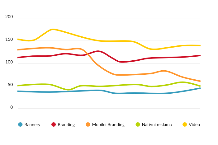 Ceny některých formátů (CPM) na začátku roku a na jeho konci zůstaly víceméně stejné. Výkyvy byly znatelné v průběhu roku. Například video reklama na nejvyšší průměrné ceny dosáhla v březnu a poté klesala. Výraznější propad cen v síti R2B2 nastal i u mobilního brandingu. Za tímto snížením stálo obecné snížení floor price tohoto formátu mezi vydavateli. Celoroční vyrovnaný trend si držely bannery a nativní reklama.