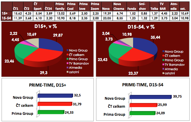 V celodenních podílech se tradičně v sobotu daří i Nova Cinema, ve své hlavní skupině 15-54 se přiblížila k 9% hranici.