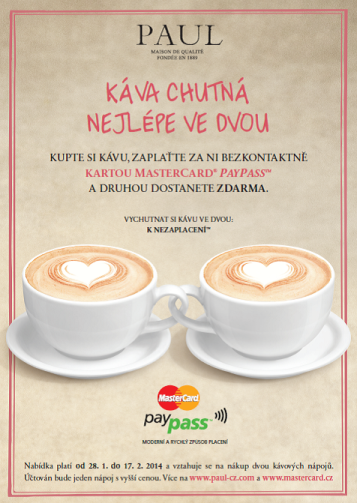 Některé společnosti si kromě valentýnské nabídky připravily i speciální akce. Společnost MasterCard ve spolupráci s pekařstvím Paul nabízí dvě kávy za cenu jedné těm, co platí bezkontaktně. Kromě toho MasterCard připravila facebookovou aplikaci na rozesílání pozvánek na kávu svým přátelům. „Společná valentýnská nabídka pak vyvrcholí celodenní akcí v den svatého Valentýna před pekařstvím Paul v ulici Na Příkopě v Praze. Mezi 11.00 a 19.00 zde budou moci kolemjdoucí vyznat svému protějšku city v improvizovaném altánku lásky formou krátké básně či písničky. Za odměnu mohou získat krásné květiny a společnou fotografii na památku,“ popisuje Martina Piskorová marketingová ředitelka MasterCard Europe pro Českou republiku a Slovensko.