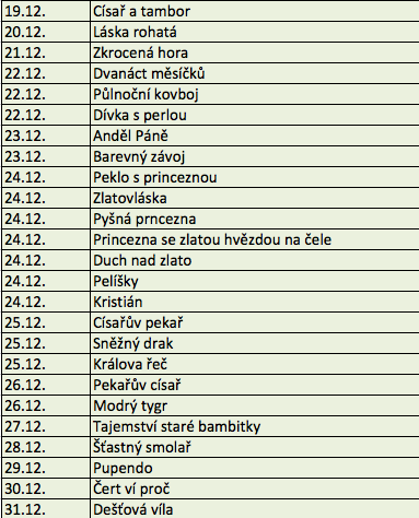 Tradičně v duchu pohádek se ponese vánoční vysílání ČT. Začne už