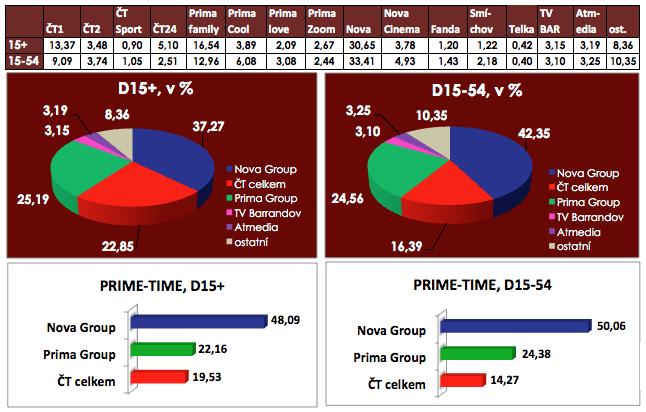 Čtvrteční prime-time ale ovládla skupina Nova, která se v 15–54 dostala