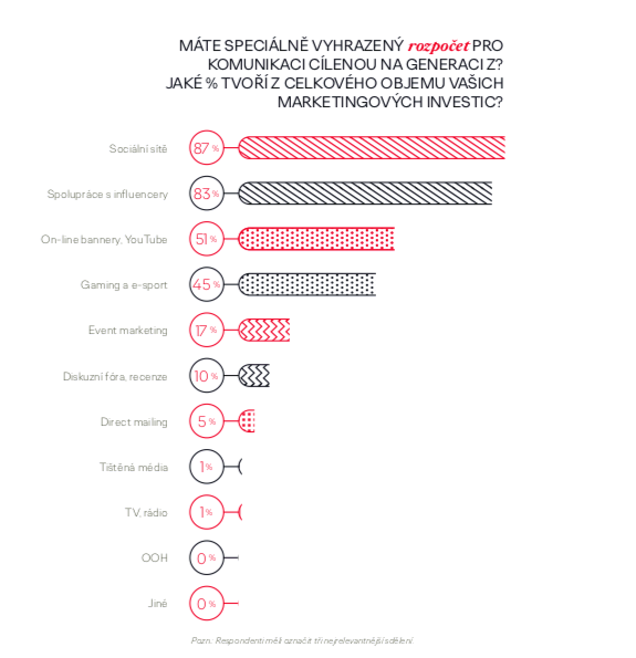 Více než tři čtvrtiny dotazovaných z řad marketérů (77 %) považuje komunikaci cílenou na příslušníky generace Z za smysluplnou. Pro pětinu má taková komunikace smysl jen ve spotřebních kategoriích, jako je móda, zábavní průmysl a elektronika.