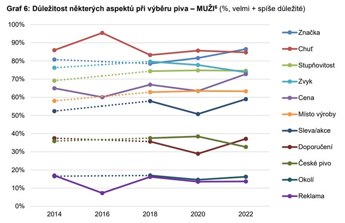 Preference při výběru piva jsou u českých konzumentů dlouhodobě poměrně vyprofilované, obzvláště to platí pro jejich mužskou část. Mezi lidmi, kteří alespoň někdy pivo pili, dokázalo v období před pandemií C-19 svou oblíbenou značku jmenovat devět z deseti mužů a tři čtvrtiny žen, v roce 2022 to bylo 82 % mužů a 72 % žen. Více než třetina konzumentů a konzumentek piva se pokaždé nebo alespoň téměř pokaždé zajímají o to, jakou pijí značku nebo typ piva; další téměř polovina mužů a čtvrtina žen se o to zajímají většinou.