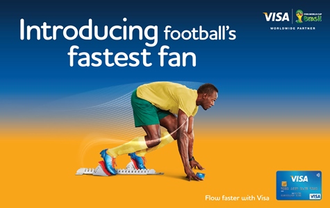 Visa Europe jako oficiální partner FIFA představila novou reklamní kampaň k fotbalovému mistrovství světa, které s eletos uskuteční v Brazílii. Znovu se v ní objevuje Usain Bolt.