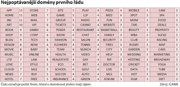 Americká organizace ICANN, která spravuje světové domény, ve středu uveřejnila seznam zájemců o vlastní doménu prvního řádu. O ekvivalent k české národní zkratce .cz má ale zájem pouze jediná tuzemská firma. Další zřejmě odradila vysoká cena.