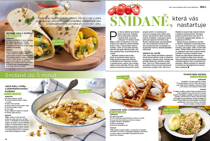 Další část obsahu je zaměřena na aktivní pohyb, stravování či relax (tipy na lázně či wellness pobyty). Vydavatel přitom cílí na širší skupinu čtenářů. „Například v sekci, kde se věnujeme jídlu, chceme ukázat, že ingredience lze koupit levně, ale zároveň, že z nich lze připravit zdravé a dobré jídlo. Recepty vybíráme tak, aby příprava byla rychlá,“ popisuje Čiháková. Magazín také přináší speciální část zaměřenou na čtenáře starší 55 let. Pravidelně by ji mělo tvořit šest až osm stran s rubrikami jako Psychologie, Procvičujeme si mozek nebo Fakta.