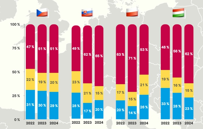 Průzkum veřejného mínění v zemích V4 odhalil měnící se postoje ke